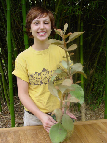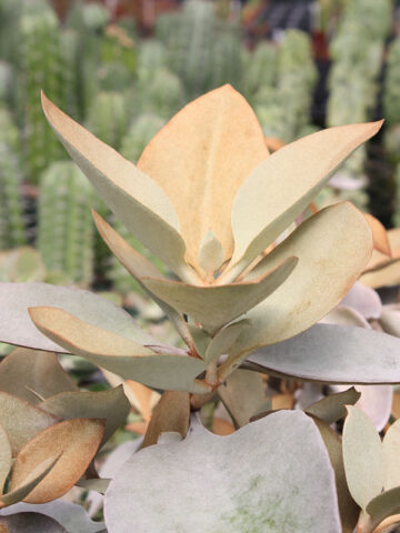 The light felt texture of the cardboard brown leaves evokes visions of the great outdoors. This highly unique 5- to 6-foot-tall Kalanchoe is happiest in well-drained soils. What a great way to add the guy touch to any plant collection. In full sun, the fuzzy leaves turn more silver-green, producing an alluring appearance. Excellent for container growing, Kalanchoe are tolerant of underwatering, making them the perfect plant for urban water conservation gardens.